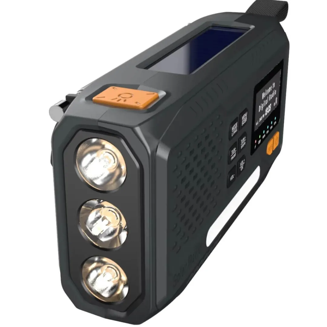 Derudover har den også et solpanel på toppen, så det er muligt at generere strøm, selvom der ikke er adgang til ladning via kabel. Her skal nødradioen stilles i direkte sollys. Bemærk at det er svært for en nødradio at blive fuldt opladet via sollys, dog bruges dette til at vedligeholde batteriet, samt i nødstilfælde at kunne oplade tilstrækkeligt.
