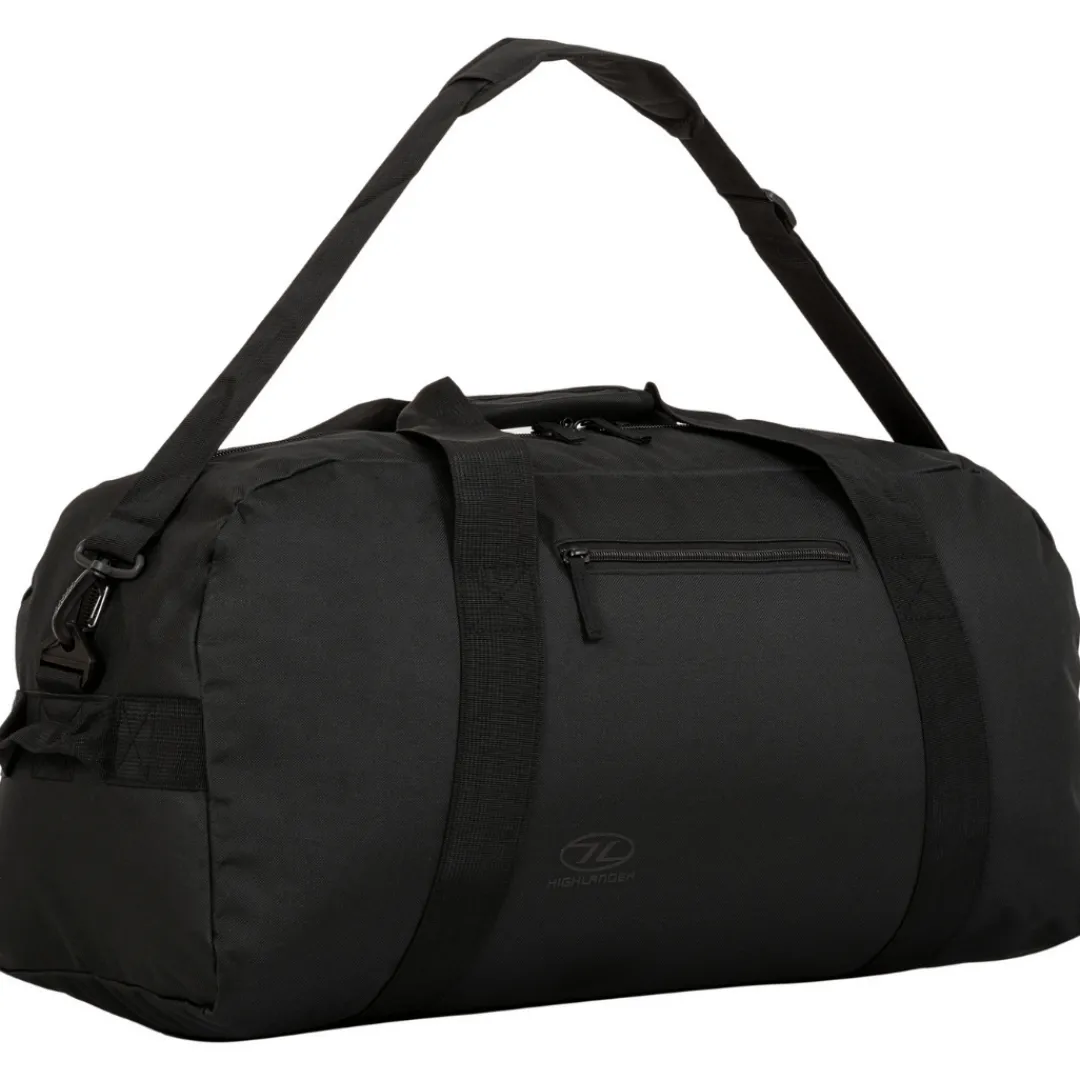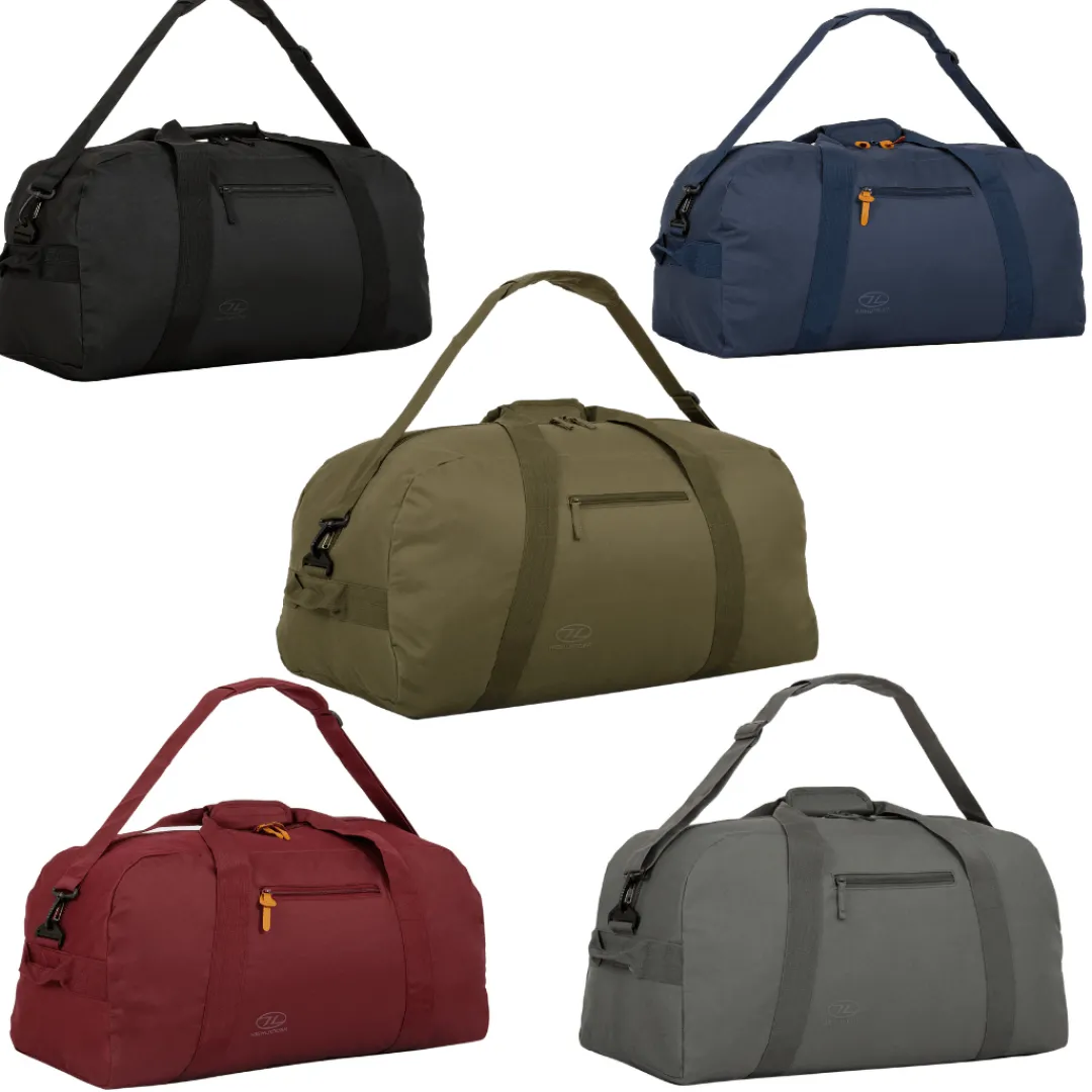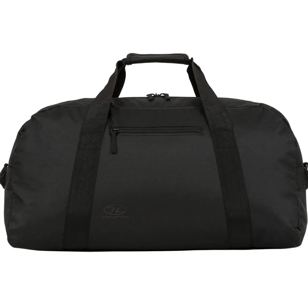 Highlanders 65 liters Cargo er en slidstærk duffelbag i 600D XTP Polyester. Cargo har et stort hovedrum med en kapacitet på 65 liter samt en lille udvendig lomme på siden. Duffelbag’en er dermed god til korte weekendture til storbyen, hvor det ikke er nødvendigt at bære tasken som en rygsæk. Cargo måler 68 x 30 x 32 cm og vejer 700 gram.