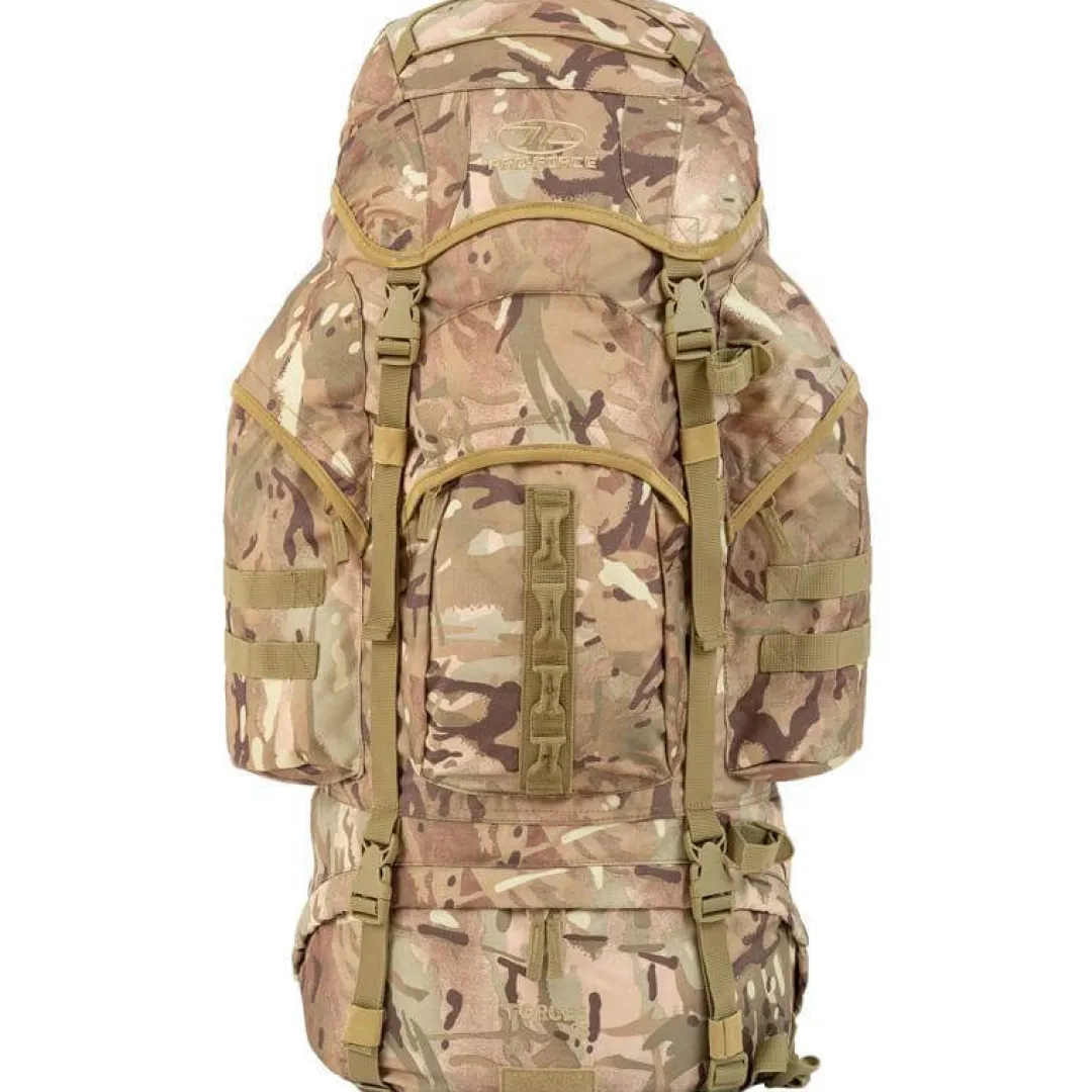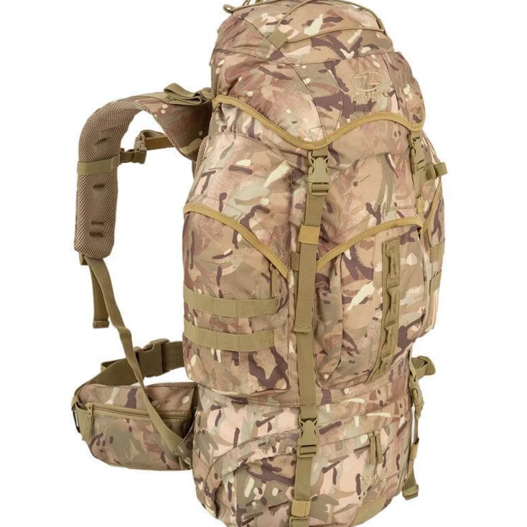 Pro Force rygsækken fra skotske Highlander er designet til militær og specialstyrke brug. Rygsækken er dermed designet både hårdfør men letvægtig og kommer i camouflage farver. Militærrygsækken er lavet i det stærke 1000D materiale, og har et behageligt Airmesh rygsystem. Airmesh sikre optimalt luftflow og fordampning af sved. Rygsystemet kan justeres efter din højde, og både ryggen, hoftebæltet og de kraftige skulderstropper er polstret for at sikre komforten selv på lange ture med tung oppakning. Både hoftebælte og skulderstropper er brede for øget komfort.