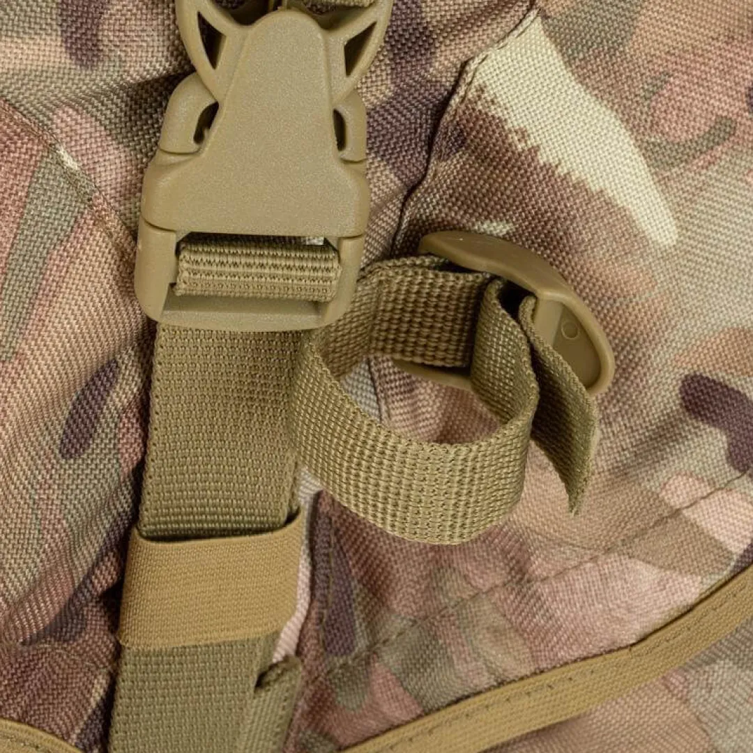 Da denne rygsæk er lavet til militær og outdoor brug er rygsækken udstyret med mulighed for at benytte et camelbag-system, så du kan holde dig hydreret under vandringen. Derudover har militærrygsækken smarte daisy-chains, som muliggøre fastsættelse af forskelligt gear. Rygsækkens sidelommer på 1,5 liter giver mulighed for inddeling af dit rejseudstyr under turen. Pro Force rygsækken har en volume på 66 liter, hvilket giver mulighed for at tage meget oppakning med på længere vandring og trekkingture.