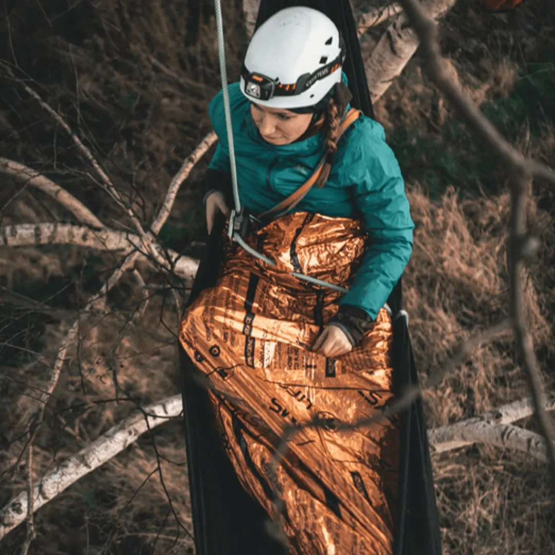 Dette termiske nødtæppe er altid godt at have med på de længere vandre- og outdoorture, hvis nu uheldet skulle være ude. Alutæppet er varmereflekterende, så den bruger din kropsvarme og omdanner det til mere. Det er lavet i genanvendeligt materiale i en flot orange farve, så man nemt kan blive set. På den ene side af det termiske nødtæppe er der en guide til overlevelse i nødstilfælde.