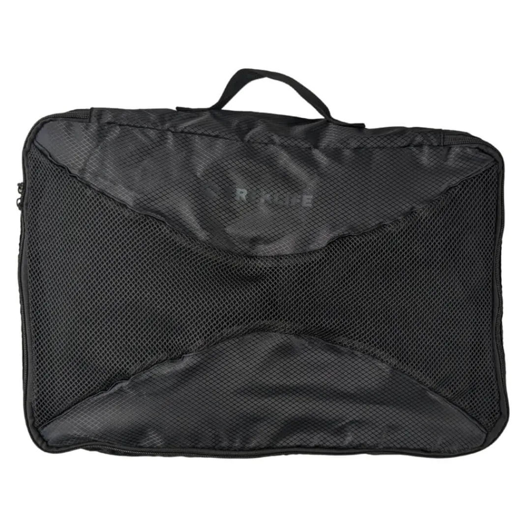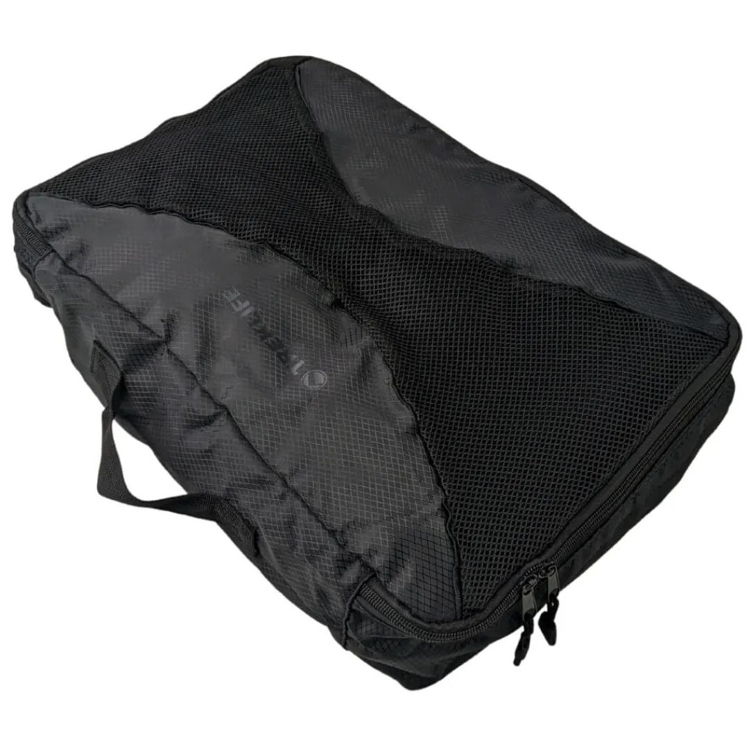 Pakkeposen er let og funktionel, og kommer med en bærestrop samt et lynlås-låg med et mesh-net, som gør du nemt kan se hvad der er i boksen. Den er fremstillet i robust ripstop materiale, som gør at boksen kan tåle nogle tæsk, og at du kan bruge den på masser af rejser.