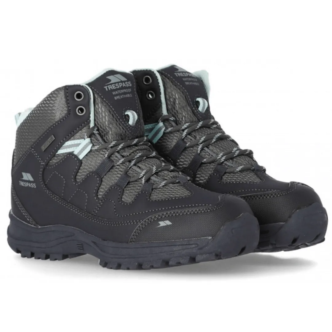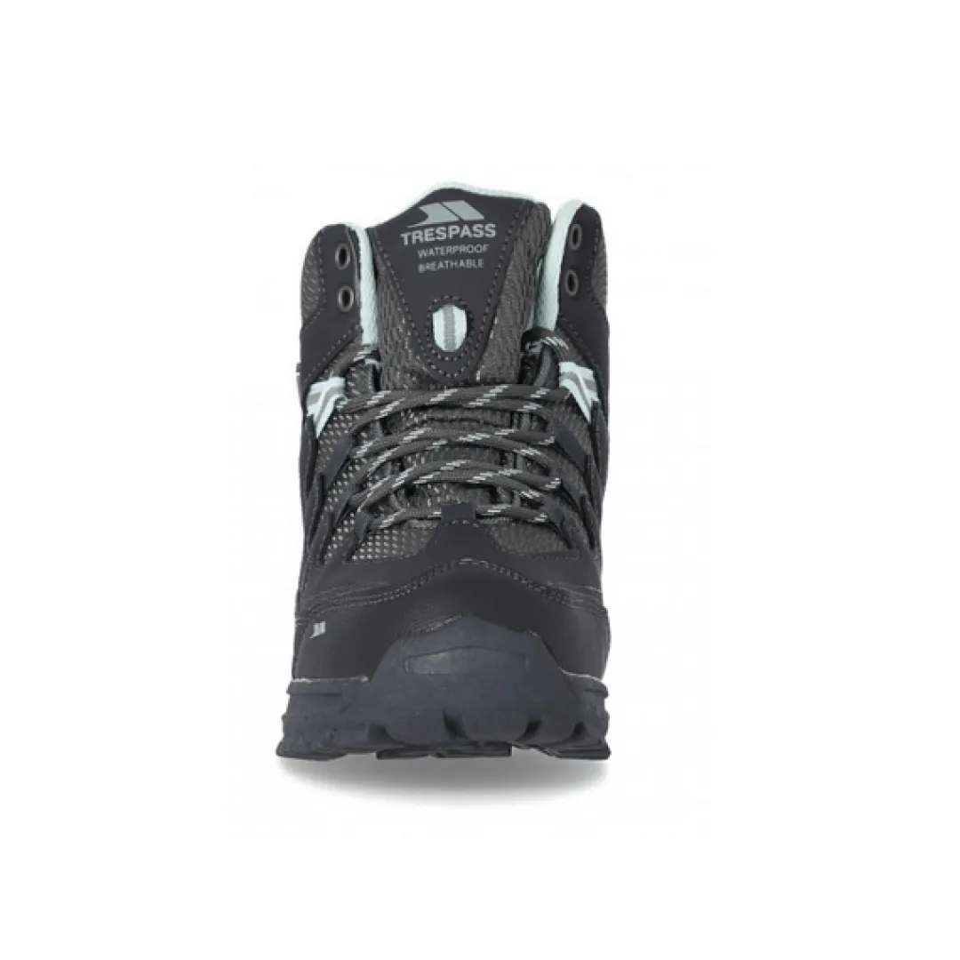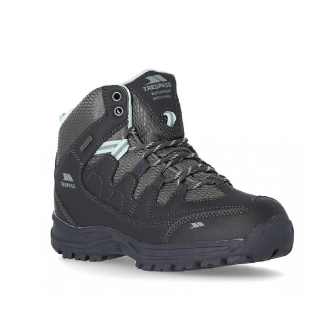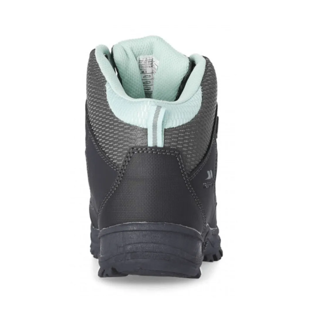 Denne vandrestøvle til kvinder i modellen kaldet Mitzi fra Trespass er brugbar i varieret terræn og længere ture. Vandrestøvlen er lavet med foret mesh for åndbarhed og en ydersål i gummi. Denne vandrestøvle er i mid-cut hvilket giver øget stabilitet til ankel og foden når du trekker på længere ture grundet hælens ankelstøtte. Derudover har vandrestøvlen gummi på tå og hæl, som forøger støvlens levetid.